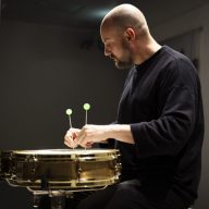 Working with two snare drums tuned in close acoustic relation, he draws out sustained tones, dense harmonic textures, and pulsing interference patterns, transforming the instrument from a percussive device into a resonant sonic body.